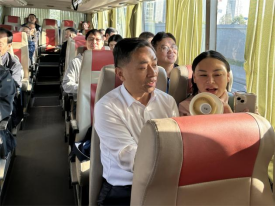 无论是林荫道上,还是车厢内,到处洋溢着欢声笑语,秋日暖阳从长江畔、洪湖边、车窗外洒向大家的心田,大家感觉到身更近了、心更暖了、劲更足了。