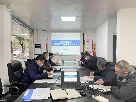 会上,各中心(室)负责人分别汇报了寒假工作完成情况及新学期工作计划。党总支书记黄超平传达了学校2月11日副处级以上领导干部会议精神,并对新学期工作提出三点要求:一是大力开展爱国卫生运动;二是着力改善精神面貌;三是全力提高工作质效。总经理江文总结回顾了寒假期间和开学前后勤各项工作开展落实情况,安排部署春季学期主要工作,并对健康驿站、食品安全、环境卫生、供水供电、物资储备、学生公寓管理等进行再梳理、再布置、再落实。