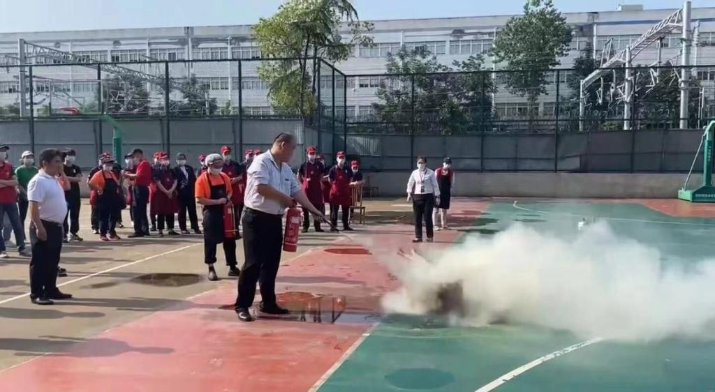 在实操演练环节,保卫部(处)消防科科长现场演示了消防水带、灭火器等消防器材的操作使用方法和技巧;食堂员工进行了火灾扑灭实操演练,按照火灾事故应急处置程序要求扑灭了演练着火装置。
