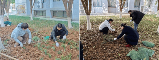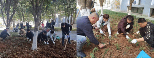 活动现场,全体职工分工协作、干劲满满,大家手持锄头、铁锹等工具,有序开展土地翻整、绿植栽种、杂草清理等作业,以饱满的热情投入到校园环境整治中。经过一下午的辛勤劳作,顺利完成了该区域的绿植补栽3000余株与环境清理工作,原本裸露的土地被新栽的绿植覆盖,校园环境更加整洁美观、生机盎然。